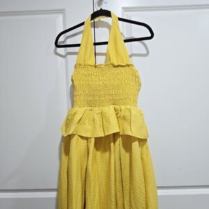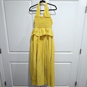 TANYA TAYLOR - XXS Yellow Gold Smocked Halter Maxi Dress ** No Tags** $495