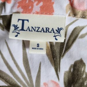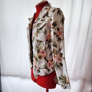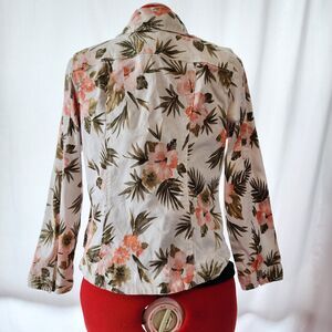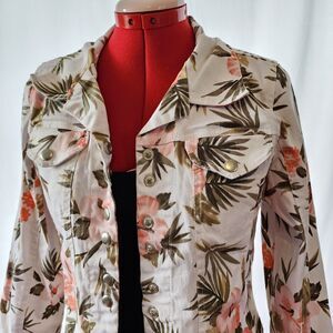 TANZARA White Floral Denim Short Jacket Snaps Pockets Size S