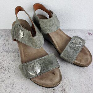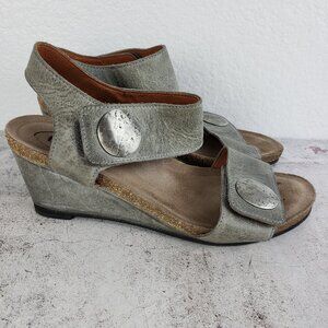 TAOS Carousel 2 Cork Wedge Leather Sandal Gray size 38 US 7/7.5 Lagenlook Boho
