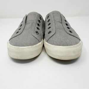 Casual slip-on sneakers by Taos. Features a gray canvas upper. Comfortable and stylish for everyday wear. Excellent Pre-Owned Condition.