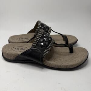 TAOS Sandals Women's 10 Pewter Genie BOHO Studded Beaded Metallic Comfort Luxury