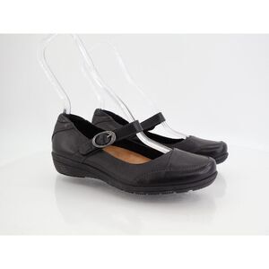 TAOS Uncommon Women's Sz 6 Black Leather Low Wedge Comfort Mary Jane Shoe