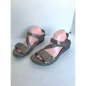 Taos Zenith Sandals Pewter Leather Strappy Comfort Open Toe Womens Size 10 EUC