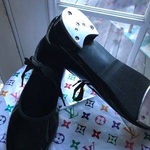 MAN MADE UPPER AND SOLE WITH SEWN IN ELASTIC AND GROSGRAIN RIBBON TIES FOR A MORE SECURE FIT. FULL LENGTH PADDED PLUSH SOCK LINING. 3/4” heel. CUSHIONED HEEL COUNTER FOR EXTRA COMFORT. NONSKID TRACTION PAD. STAR TONE TOE AND HEEL TAPS ARE SECURED WITH RESONATING BOARDS. Like new worn twice. Price FIRM