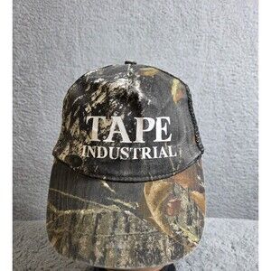 camo hat, trucker cap, TAPE Industrial, Realtree camo, workwear hat, industrial logo cap, vintage streetwear, Y2K style, hat, outdoors cap