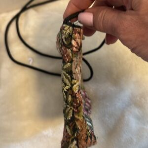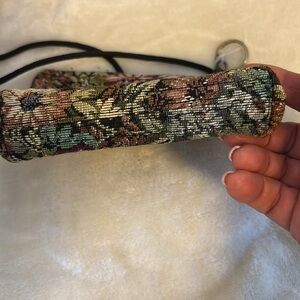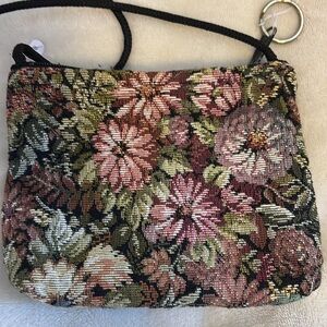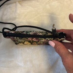 TAPESTRY MINI CROSSBODY COLORFUL ZIP CLOSURE ON TOP BLACK NYLON STRING CROSSBODY