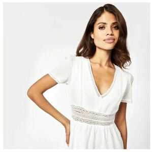 This lightweight, cotton dress is designed with a side zip closure and fit-and-flare shape. With a V shaped neckline, the Tara is finished with contrasting lace inserts. Tap into timeless dressing this spring summer for a look that always appears classic. It's all about effortless pieces that create maximum appeal.