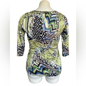 TARA RYAN SMOCK Large Green Black Blue Print Elastic belt style waist