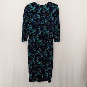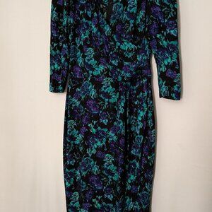 TARETI Howard Levi, Blue & Teal Floral Midi Wrap Dress Sheath; Size S