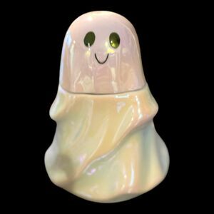 TARGET 2024 Iridescent Ceramic Ghost Canister Candy Jar 6.75” Silicone Gasket
