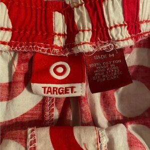 Stylish pajama pants with a vibrant red and white TARGET logo. Unisex size Medium.