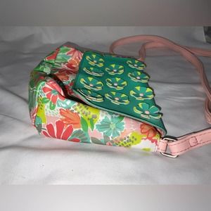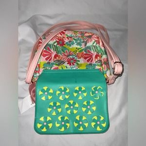 TARGET PINK GREEN YELLOW FLORAL FAUX LEATHER GIRLS SHOULDER BAG PURSE