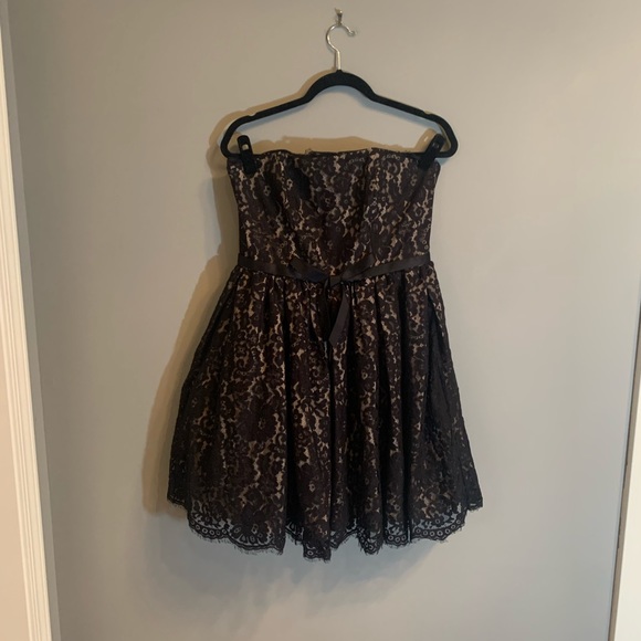 Brand new fit and flare Robert Rodriguez black lace dress with tan under and a ribbon around the waist. Back zipper with eye hook closer and a back support inside the dress