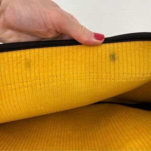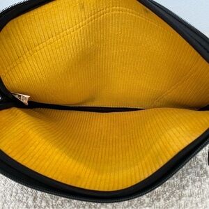 This item is pre-loved, gently used, no visible signs of wear on the outside. All zippers are intact. No loose threads or tears. The inside has light stains, please refer to the pictures closely. Bag measures approximately: 13.5” x10”