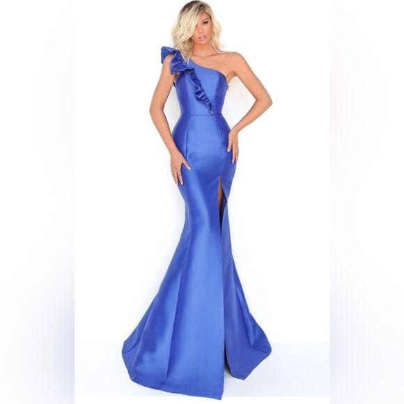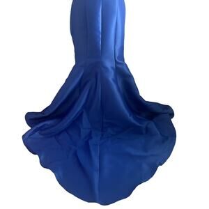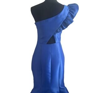 TARIK EDIZ 2 Formal Gown $438 Dress Ruffle One Shoulder Size 2 Royal Blue 50774