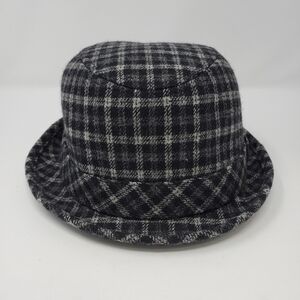 TARNISH BLACK GREY PLAID WOOL BLEND TRIBLY FEDORA HAT WOMEN OS