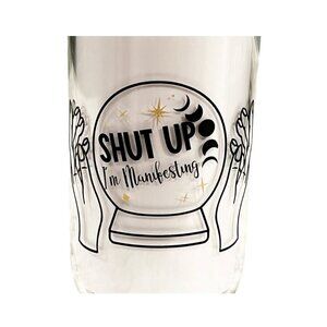 TAROT manifesting drinking glass bamboo lid glass straw "shut up I'm manifesting