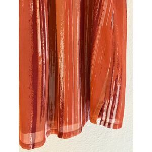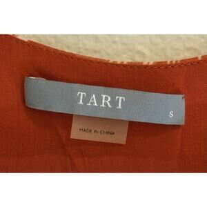 Tart women’s blouse, size Small. Gorgeous copper-orange tone, perfect for fall styling. Features a ruched neckline, sleeveless cut, and lightweight lined fabric for comfort and coverage. Made from 100% polyester—soft, flowy, and easy to care for (machine wash cold, lay flat to dry).
