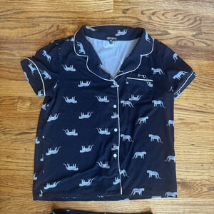 TART Intimates Pajama Set Womens Medium Leopard Print Soft Button Up Athleisure