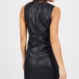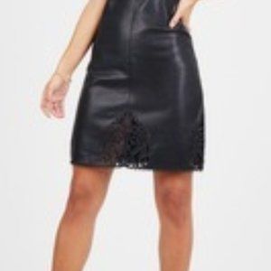 The perfect mix of sexy and feminine - this faux leather dress features lace cutouts that give little peeks of skin and legs. Finish off with your favorite strappy black heels and confidence that commands the attention of the room.