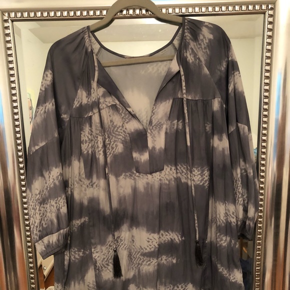 Pretty silky peasant sleeve blouse. Dark grey light grey watercolory pattern. Great for work. Never worn.
