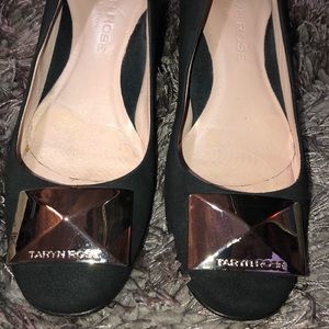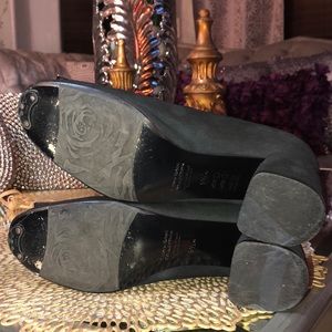 TARYN ROSE Collection black suede leather great condition beautiful shoes only a small scratch on the right heel and visible scratches on the metal plate size 51/2 but it remains at 61/2