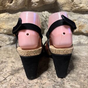 TARYN Rose Black Suede Nubuck T-Trap High Wedge Heels Strappy Bow Sandals Ws 7. Condition is Pre-owned. Shipped with USPS Ground Advantage.