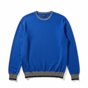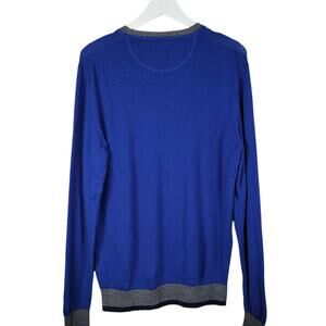 Tasso Elba Merino Wool Blend Cobalt Blue Crewneck Sweater. Beautiful blue with grey and black trim.