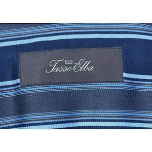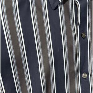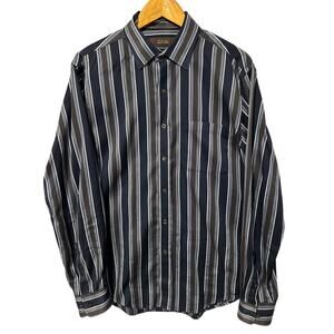 TASSO ELBA Men's Navy Charcoal Light Blue Striped Long Sleeve Dress Shirt | M