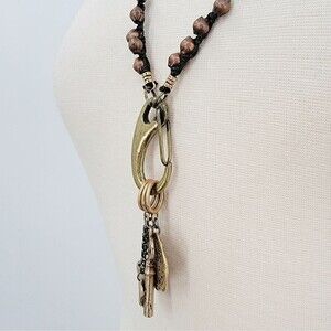 TAT2 Designs Bohemian Long Beaded Carabiner Charm Holder Coin Key Brass Necklace