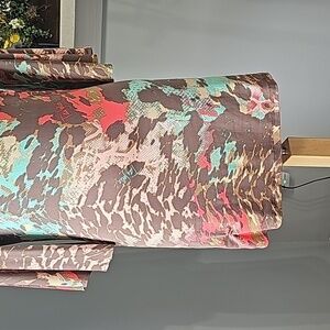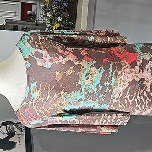 This adorable jersey fabric pop over dress is so easy to travel with. Great pinks and green colors. Excellent condition and quality. Size medium, Pit to pit flat measurement is 18". The top to bottom length is 31.5 ". Sleeves are 11". Consider making a bundle and get an even better offer.