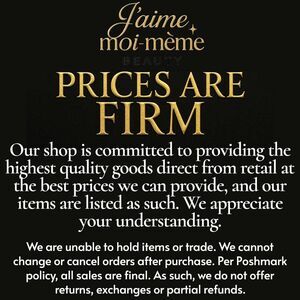 Please note that we are unable to hold products or trade. We are unable to cancel or otherwise change your sale after purchase. Per Poshmark, all sales are final. Therefore we cannot allow for returns or exchanges. Each listing is for 1 product only.