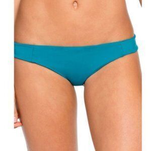 Printed accents and solid sides style beach-ready bikini bottoms cut with a cheeky fit.