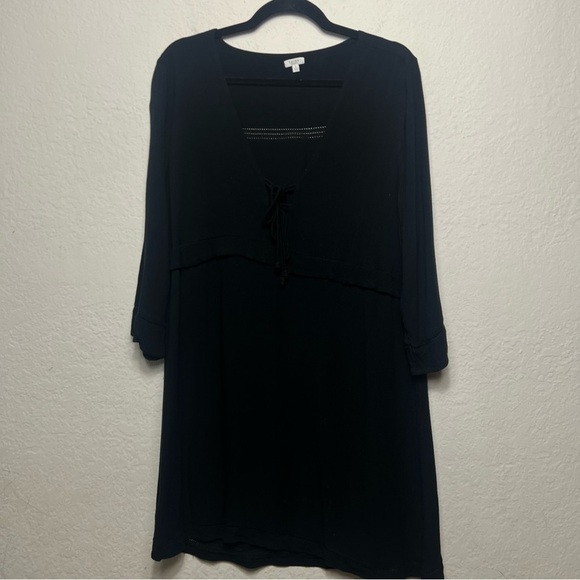 Stylish black tunic top with a tie-front detail. Swim cover up