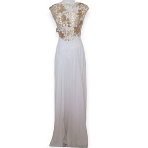TAWNY WHITE & GOLD SEQUIN GOWN SZ.S EUC.