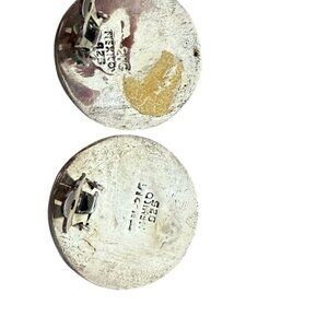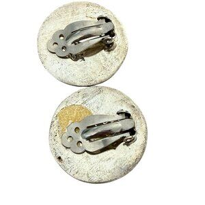 TAXCO MEXICO Sterling Large Button Clip on Earrings Modernist Onyx inlay TM-21G