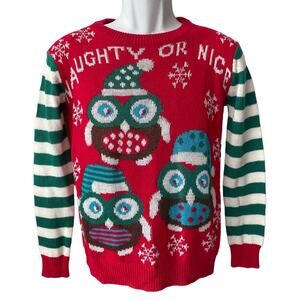 TAXI Happy WHO-lidays Owls Ugly Christmas Sweater Size Small