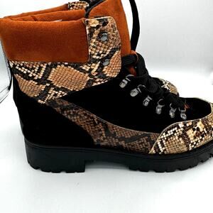 TAXI Snake Print Chunky Combat Boots 90s Grunge Street Style Black Tan wmns 10