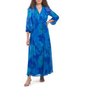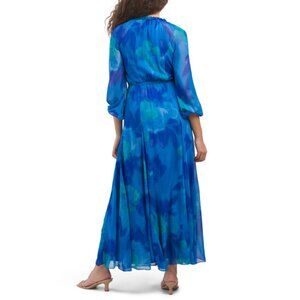 TAYLOR Blue Long Sleeve Floral Wrap Maxi Dress