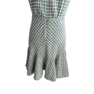 TAYLOR Green Boucle Stretch Drop Waist Ruffle Dress Size 8