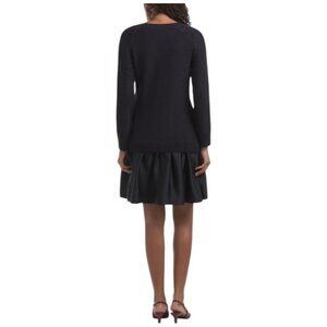TAYLOR Navy Cable Knit Sweater Mini Dress With Pleated Skirt