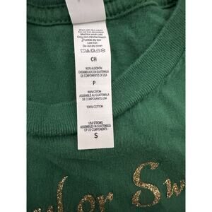 This vibrant green Taylor Swift t-shirt is a must-have for any Swiftie fan! With a stylish design, this women's size small t-shirt is perfect for casual wear or concert day. Show off your love for Taylor with this trendy piece of merchandise.