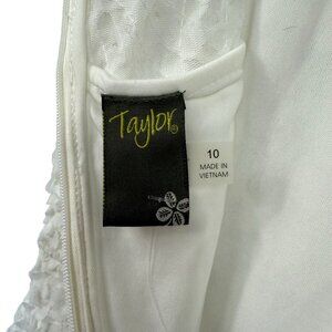 TAYLOR Womens White Dress Size 10 Floral Applique Sleeveless $188 NWT