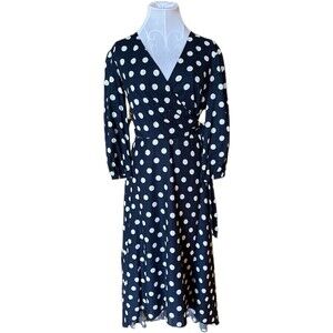 *TAYLOR*Women's 3/4 Sleeve V-Neck Faux Wrap Polka-Dot High-Low Wrap Dress Size M