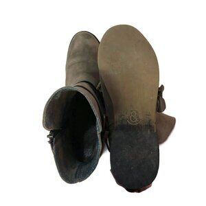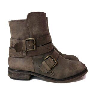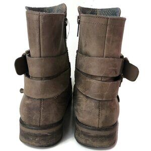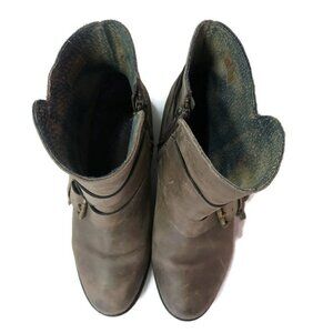 T&B light brown distressed leather w/buckles & inside zip ankle boots, Size 8 **wear on soles & leather