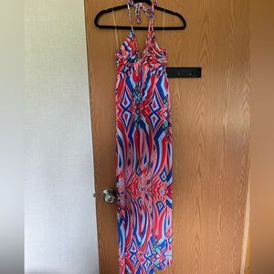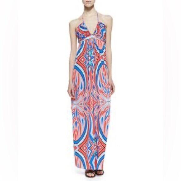T bags Los Angeles x Anthropologie summer orange pink blue abstract braided strap maxi dress. Excellent condition