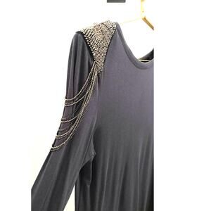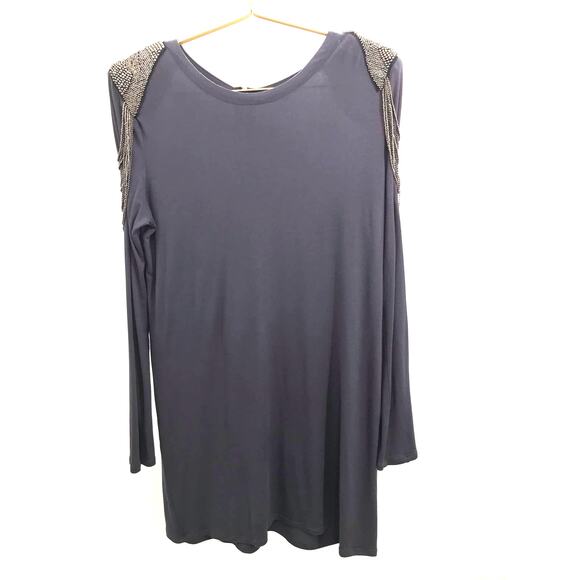 T-Bag Los Angeles Gray Beaded Shoulder Long Sleeve T-Shirt Mini Dress Size M
