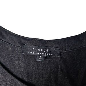 This T-Bags Los Angeles Shift Dress in black is a stylish choice for any occasion. It features a layered ruffle design and is made from comfortable knit material. It is sleeveless and suitable for women's size large.