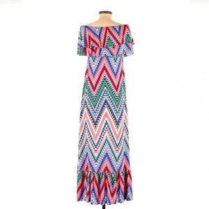 T-Bags Los Angeles Off The Shoulders Chevron Dress Midi Maxi Ruffle Size Small S