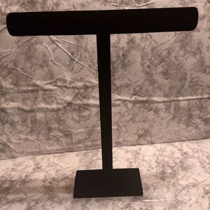 Elegant black T-bar stand for displaying jewelry. Perfect for necklaces and bracelets.